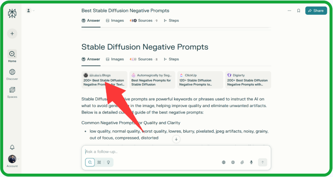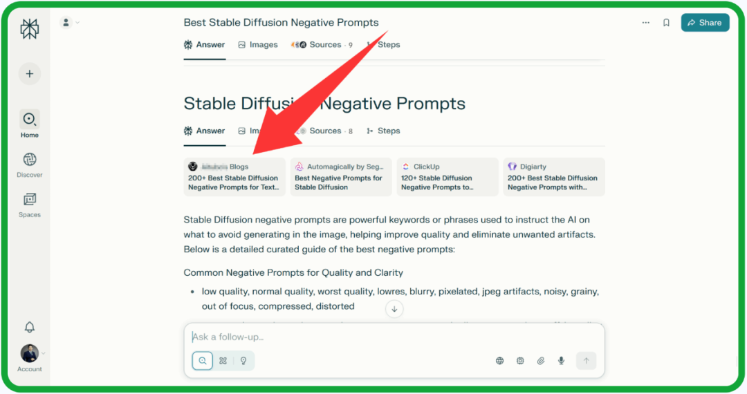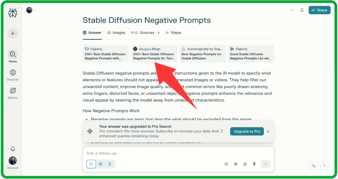 比如,我之前在AI工具项目中发布的文章,涉及“Stable Diffusion Negative Prompts”相关话题,轻易被AI搜索引擎捕获。