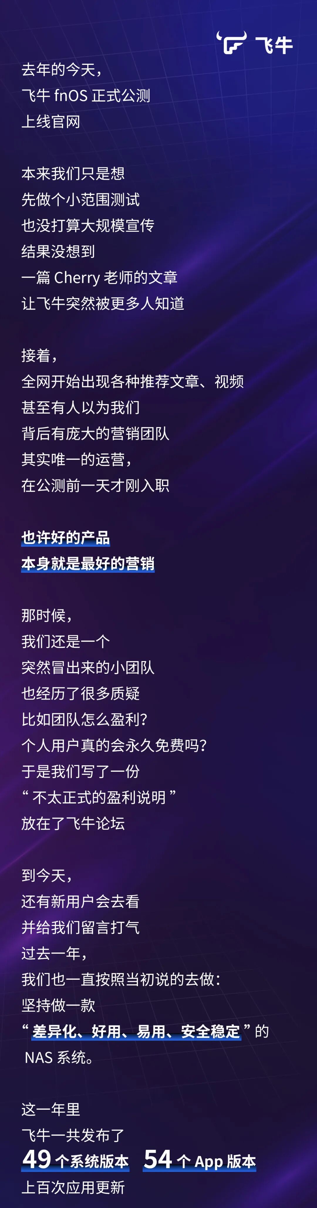 评论区留言【你使用飞牛多久了 & 你最喜欢的功能】,截止9月3日,点赞数前三名送出创始人同款限量周年T恤!