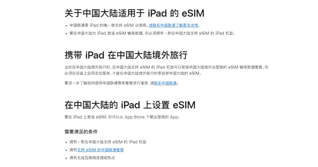 对于这种情况,之前苹果官网的 iPad 的 eSIM 也有说明,想外版使用 eSIM 服务,你只能等某强北技术了,反正是正常的外版设备是不能使用国内eSIM服务。