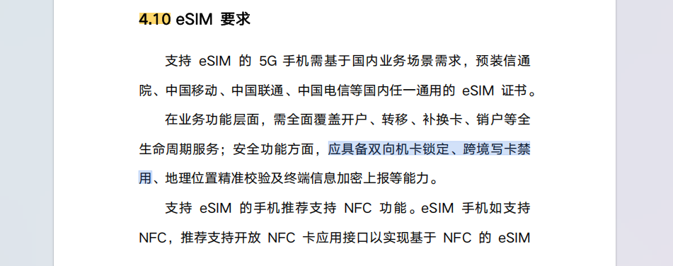 从白皮书的 4.10 eSIM 要求中,提到三点: