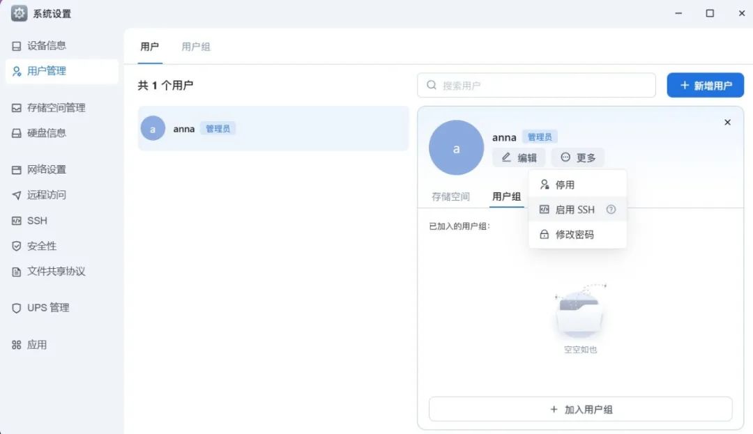 1.首先,我们可以开启管理员账号的 SSH 功能