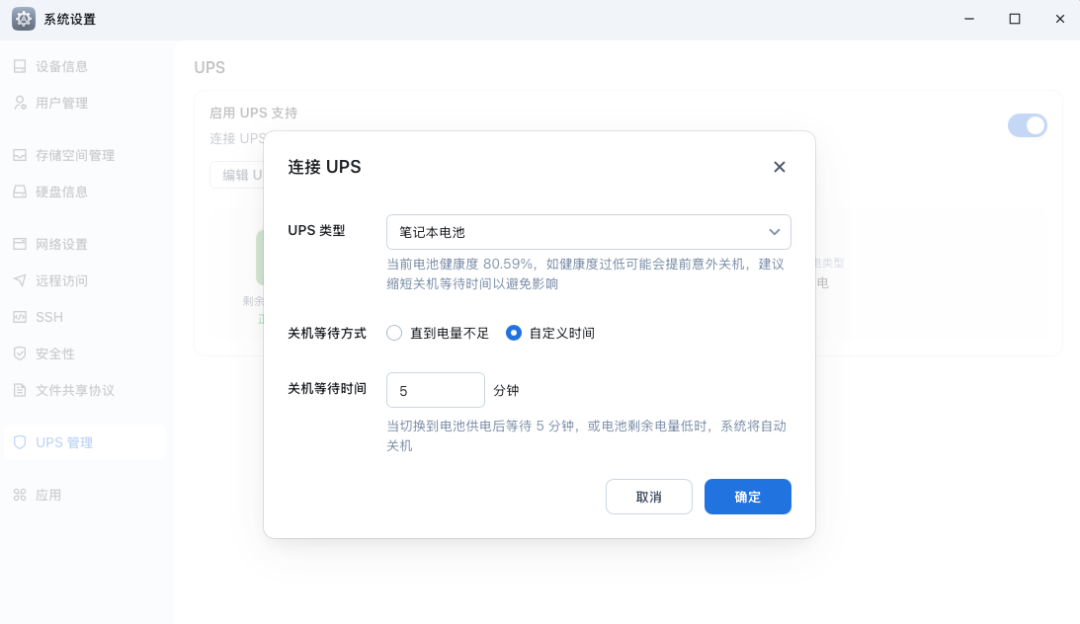 飞牛支持将笔记本电池设置为 UPS!