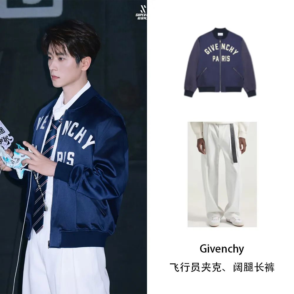 丞磊在新作品见面会上,身穿total的GIVENCHY,棒球夹克搭配白色阔腿裤,一整个阳光帅郎,配色也清新干净,少年感十足,妥妥的初秋穿搭模版,男孩们Get起来!