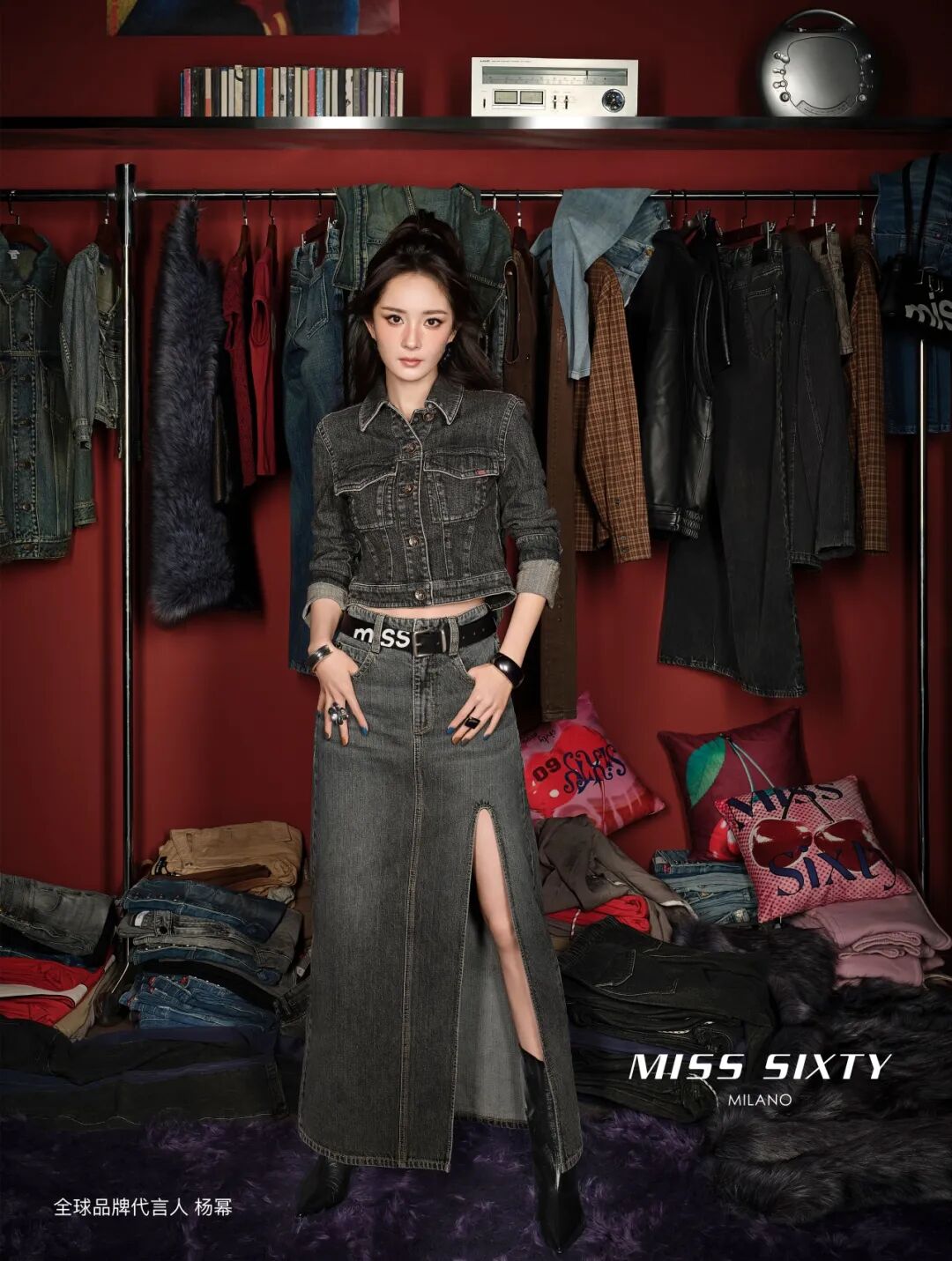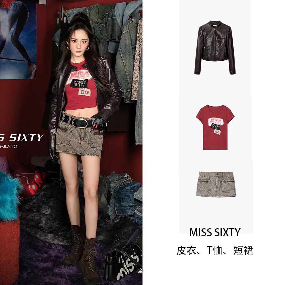 杨幂本周带来两套初秋穿搭范本,演绎千禧辣妹风,牛仔夹克内搭红色T恤,以及短款牛仔半裙更添辣感,复古版型搭配做旧辅料配饰,新复古回潮将整个秋日的氛围温柔萦绕。