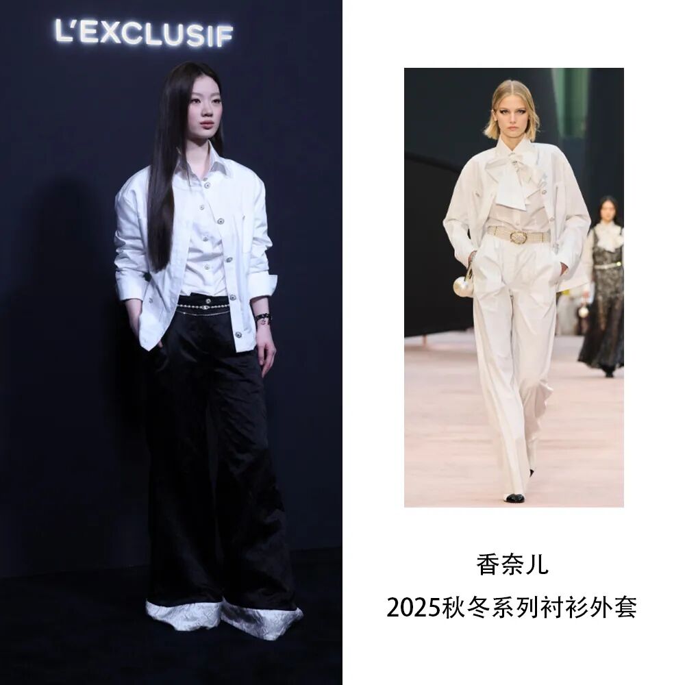 单依纯以一身香奈儿2025秋冬系列的衬衫外套,搭配杭州高级手工坊系列的棉质提花阔腿长裤亮相,干练利落中又不失飒美兼具的优雅格调,完美适配的香奈儿女郎。