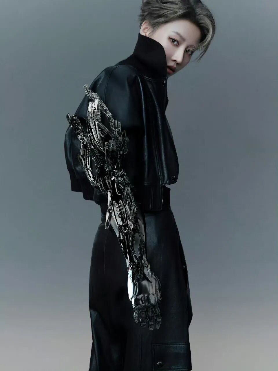 刘雨昕将赛博朋克风演绎到极致,身穿迪奥2025早秋系列的黑色皮衣,以及金属手臂的装饰充满科幻感,又酷又飒,让人眼前一亮。