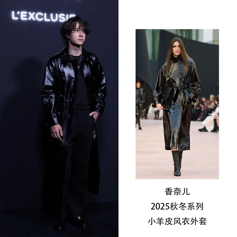 在香奈儿蔚蓝之夜发布活动上,香奈儿男孩女孩纷纷亮相,王一博身穿香奈儿2025秋冬系列皮质风衣外套,搭配卷发贵族气息拉满,不得不叹服他的驾驭能力,All black的造型也不失层次感,贵气十足。