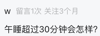 答:圈友“w”您好,午睡时长以20~30分钟为宜,最好不要超过30分钟。