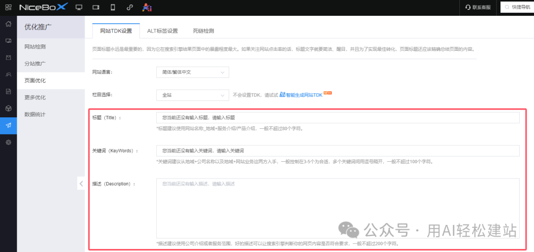 网站最好之后,一定要先设置网站TDK,然后再发布上线,这样可以让搜索引擎能更容易识别你的网站。