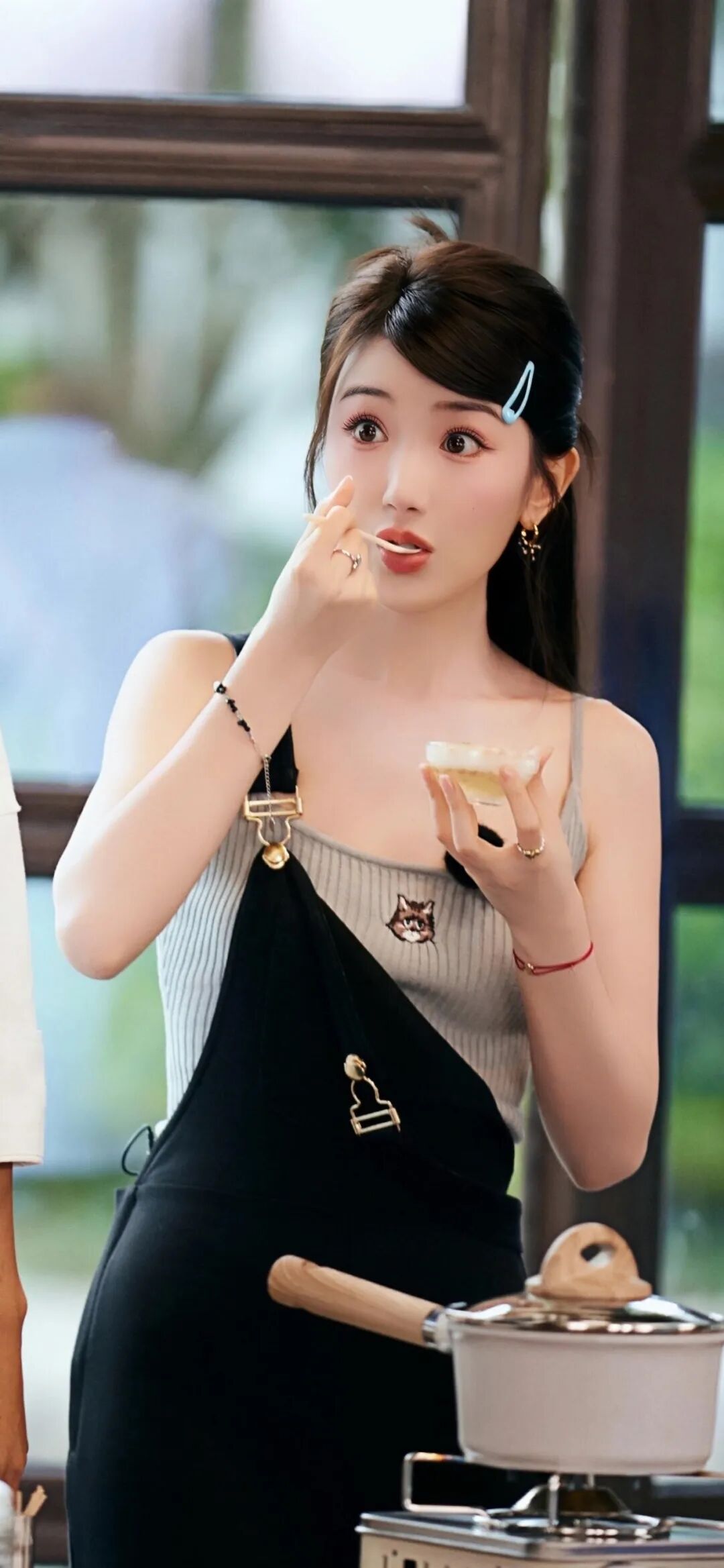 不得不说,毛晓彤真的把这件吊带穿出了独特韵味,将甜与辣完美融合,就像一只灵动俏皮的小猫咪,让人忍不住心动。