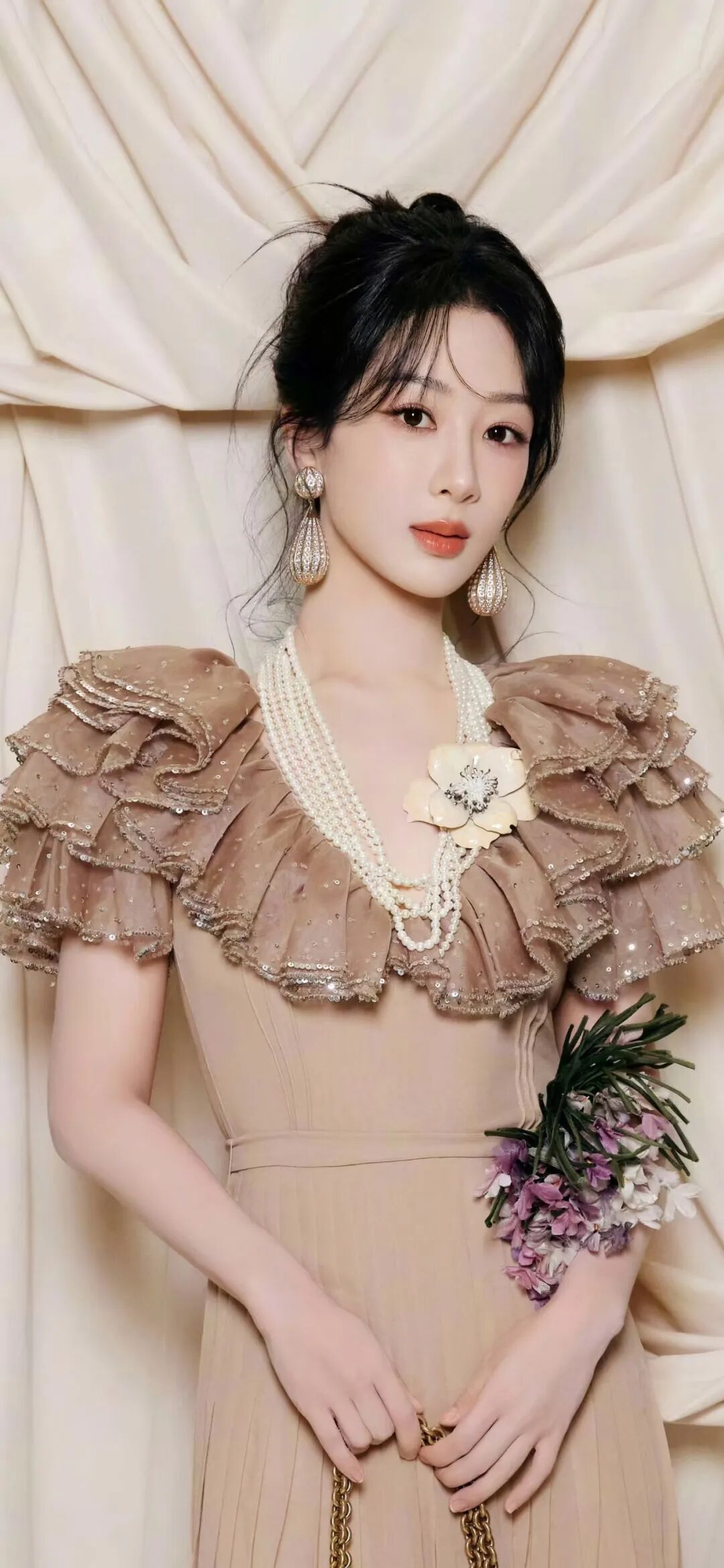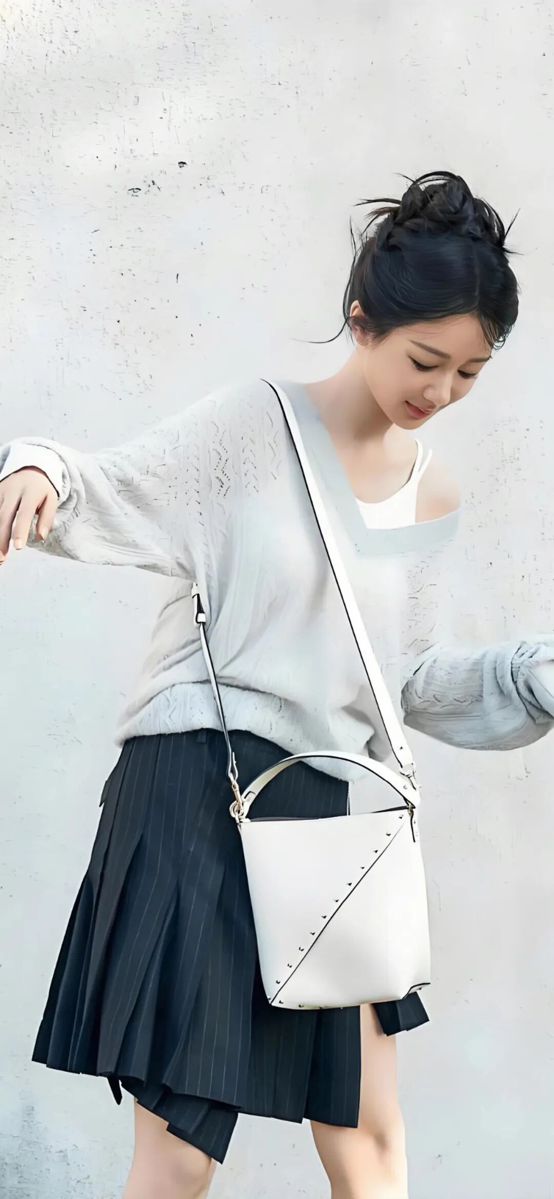 杨紫的甜系穿搭,善用柔和的浅色系。泡泡袖上衣搭配短裙、蝴蝶结发饰点缀,搭配清爽丸子头,俏皮又减龄,宛若邻家女孩般清新治愈,满满的初恋感。