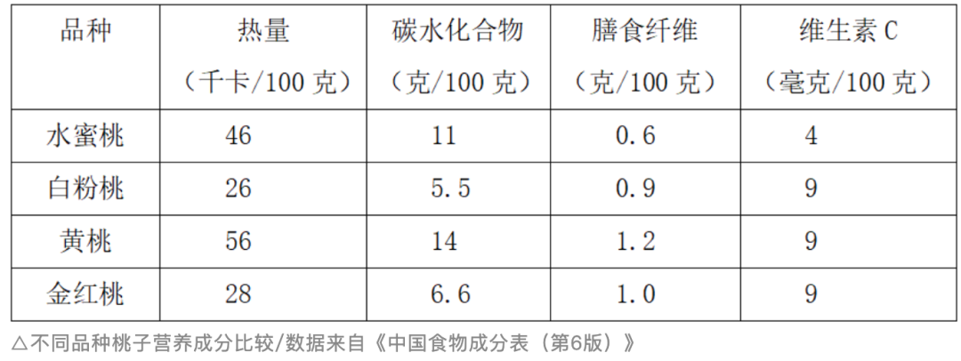 桃子热量总体都不高,如果正在严格减脂,可以优中选优。从表中可以看到,白粉桃热量最低,可以优先选择。最好避开热量更高的水蜜桃和黄桃。金红桃的热量也不高,大家可以根据自己实际情况酌情选择。