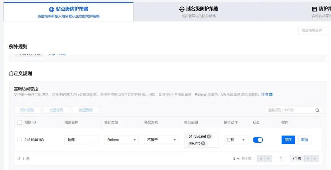 站点管理 - 加速与安全 - 安全防护 - WEB防护 -添加规则
