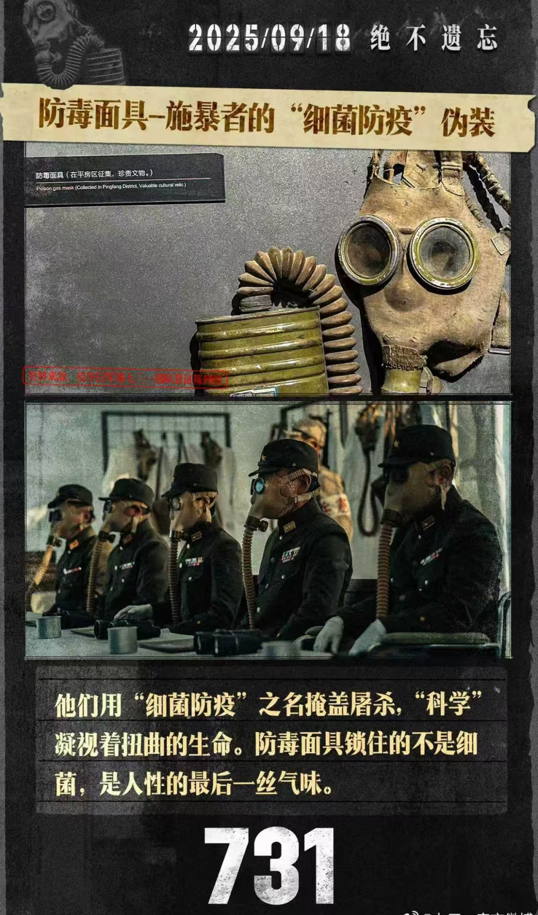 《731》能够上映,而且被安排在9.18这个具有重要历史纪念意义的日期上映,就足以让我们无视和不计其中的一些创作制作波折,也足以击穿一些人和势力的恶意构陷与谣言。
