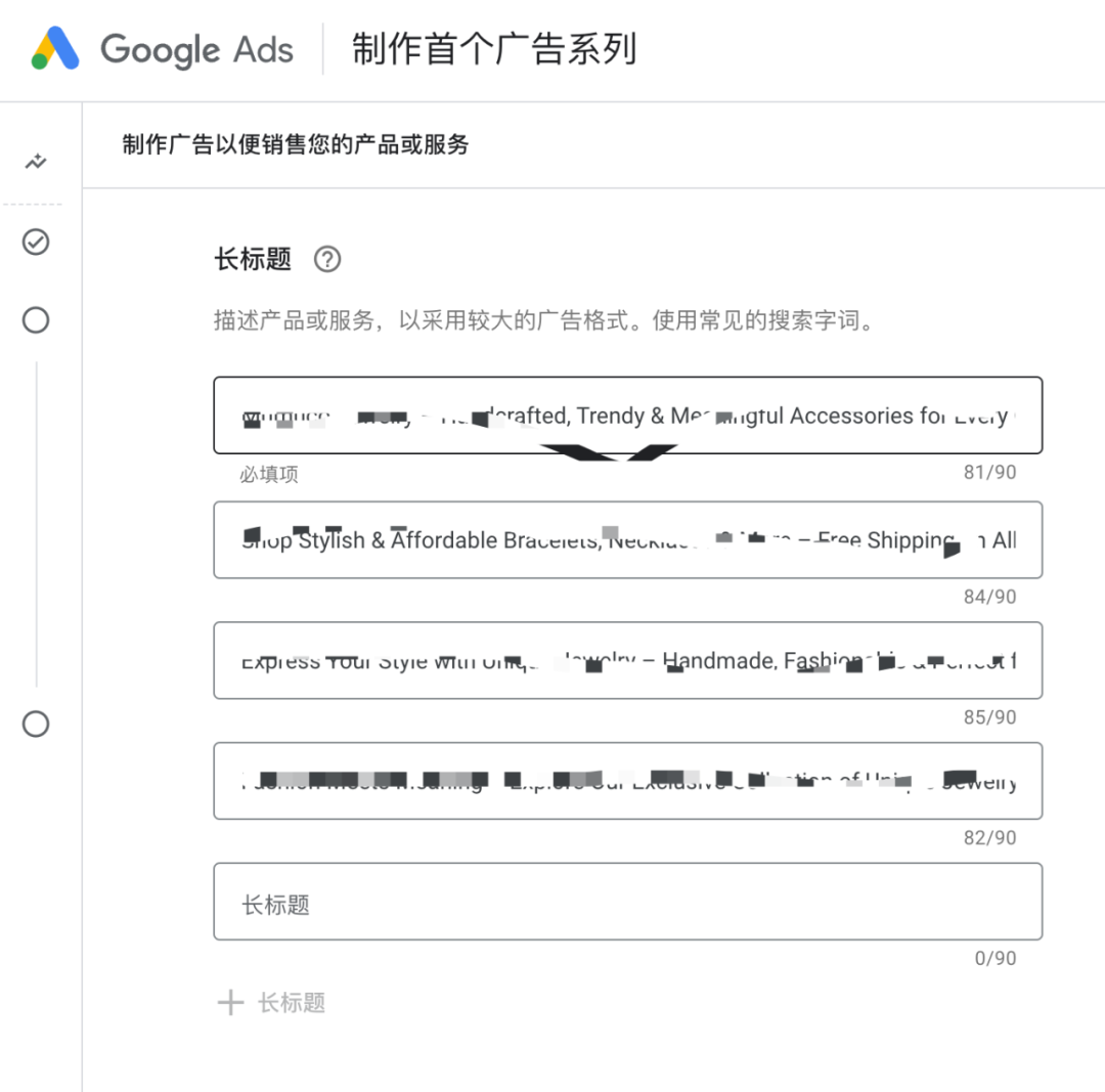 然后就是广告标题,内容这些了,注意标题多想几个(有字数限制),广告会随机选取标题进行展示,如下图