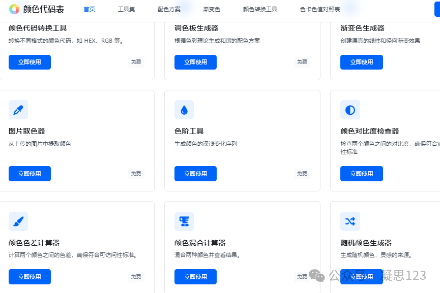 7、颜色代码表——专业的在线颜色代码转换配色工具网站;