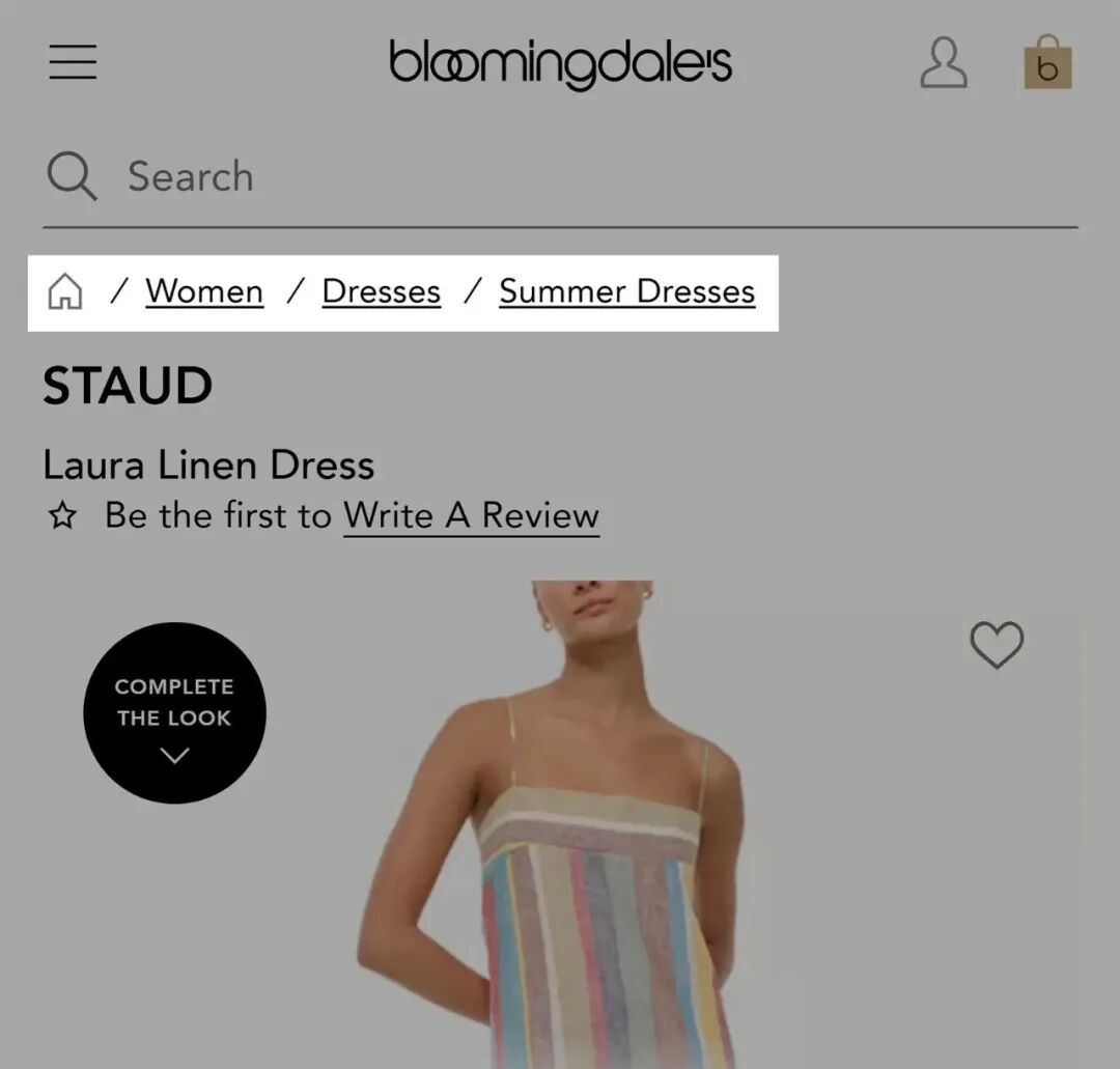 痕迹导航应包括从主页或主类别页面到当前目标页面的完整路径。(根据您的网站结构,可能会有更多步骤。这允许访问者追溯他们的步骤并快速返回您网站的重要部分。