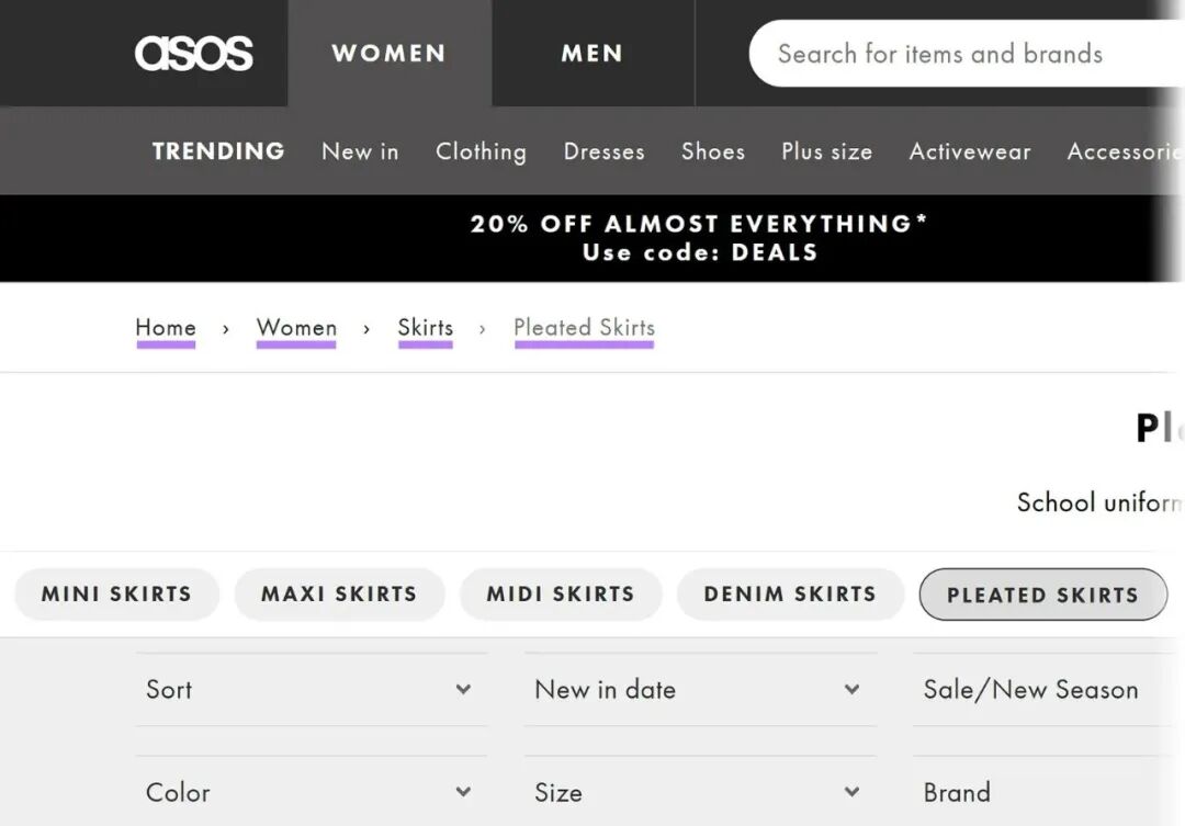 在级别之间使用相同的分隔符(例如:“/”、“>”或“→”) 确保字体和链接颜色与视觉指南一致,并且在页面上看起来相同 在整个网站中应用相同类型的痕迹导航(例如:基于层次结构或基于属性的痕迹导航)