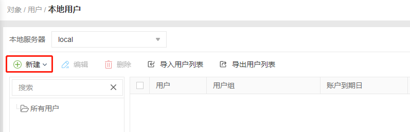 在【对象→用户→本地用户】中,点击创建,新增用户。