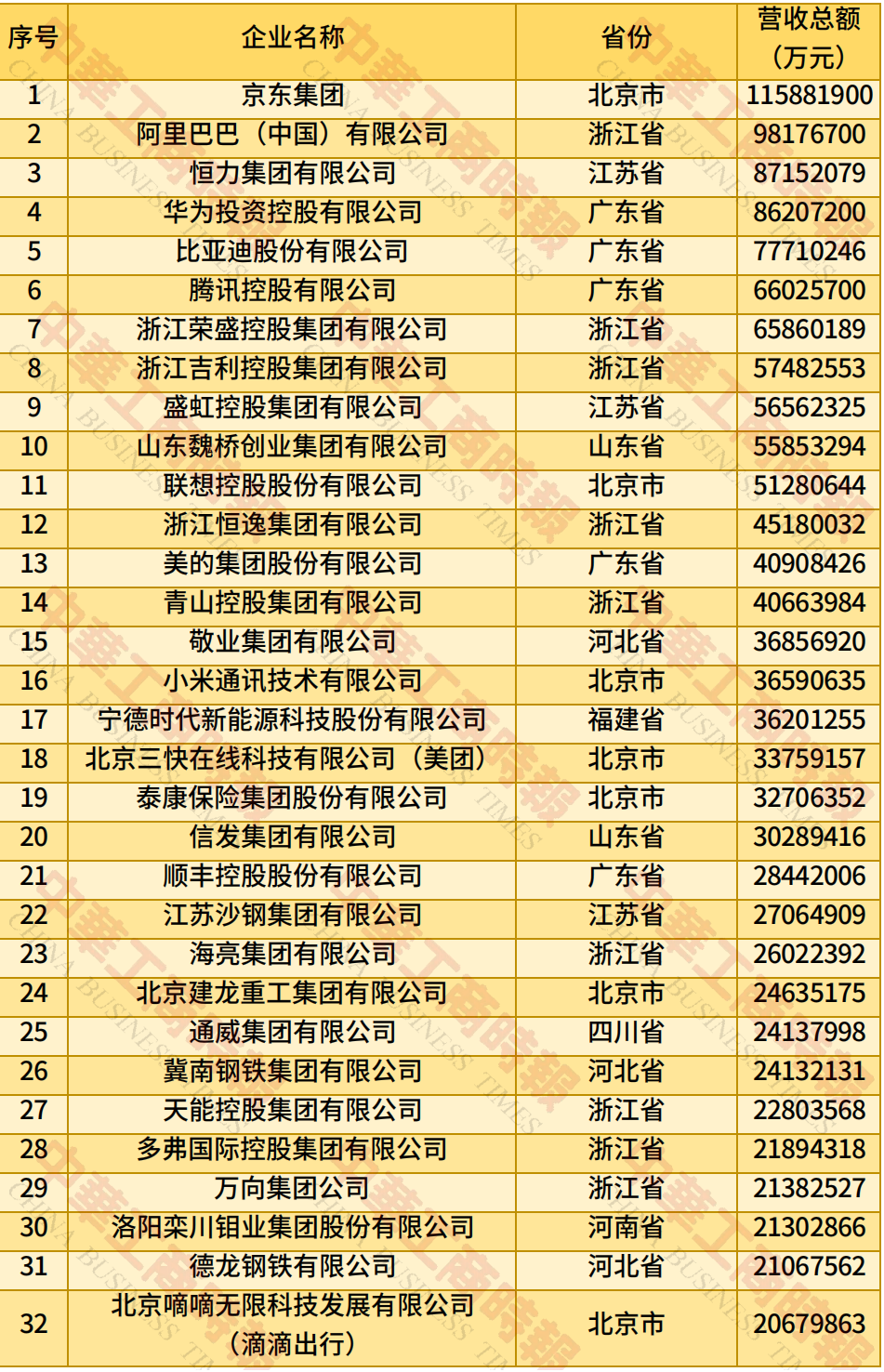记者了解到,此次民营企业500强入围门槛增至270.23亿元;营业收入总额达到43.05万亿元;净利润合计1.80万亿元;研发费用总额1.13万亿元,研发人员总数115.17万人,平均研发经费投入强度2.77%;纳税总额达1.27万亿元,纳税额超过10亿元的企业有240家,占500强比例为48.00%。