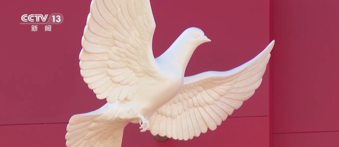 左右各7只和平鸽雕塑则象征着中华民族14年抗战的光荣历程。其设计原型是我国本土的鸽子“北京白”,设计人员在深入分析了鸽子的骨架结构后,最终确定通过圆雕加浮雕的方式还原和平鸽活灵活现的姿态。