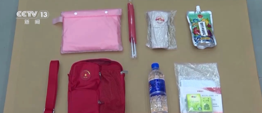 服务包中共有12种观礼人员用品,其中不仅有矿泉水和电解质水等用于补充水分和能量的饮用品,还有遮阳帽、雨披等应对各类天气的户外用品,同时配备了国旗和纪念大会标识旗,仪式感满满。