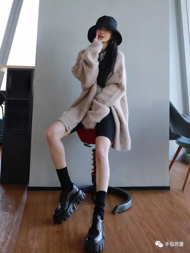 大幂幂超爱的“下衣失踪法”和“上长下短法”,借此秀出纤细的大长腿。这一身大幂幂就是用燕麦色针织开衫搭配今年夏天超火的骑行裤,骑行裤与鞋子、袜子相互呼应。再配一顶渔夫帽,有一点小俏皮呢。