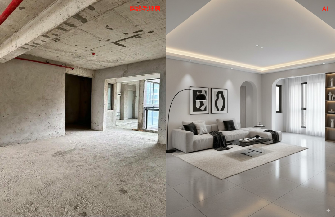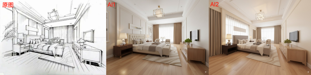 英文:Convert the picture into a real interior decoration effect drawing. The interior structure and furniture arrangement are consistent with the original picture. The materials are genuine, the light is transparent and natural, the color tone is warm, the sense of space is strong, and the details are complete