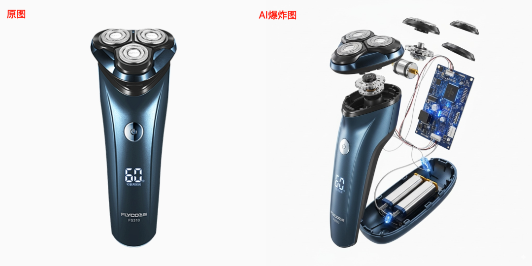 英文:Ultra-detailed product explosion view, metal parts and electronic components floating in mid-air, perfectly arranged, revealing the internal structure, futuristic technical aesthetics, 8K resolution, soft movie lighting, highly realistic. The background is pure white
