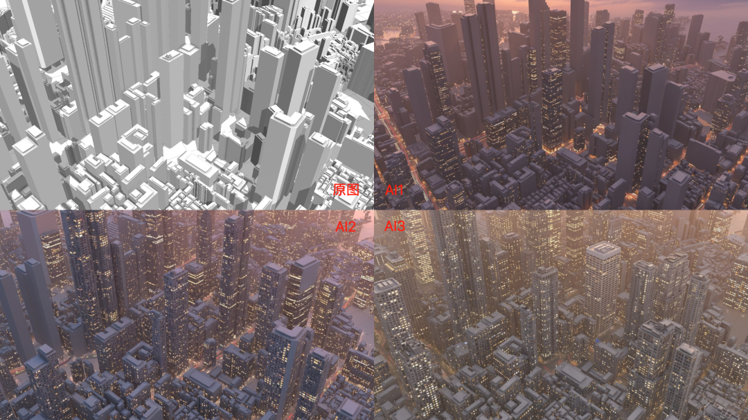 英文:This picture shows the outline of a city. Please maintain the consistency of the outline in the picture, identify each building in it, transform the picture into a realistic and natural bird 's-eye view of the city, and endow each building with life-like lighting. The requirement is in the evening, with soft light and 8k realism. The roof is also rich in details