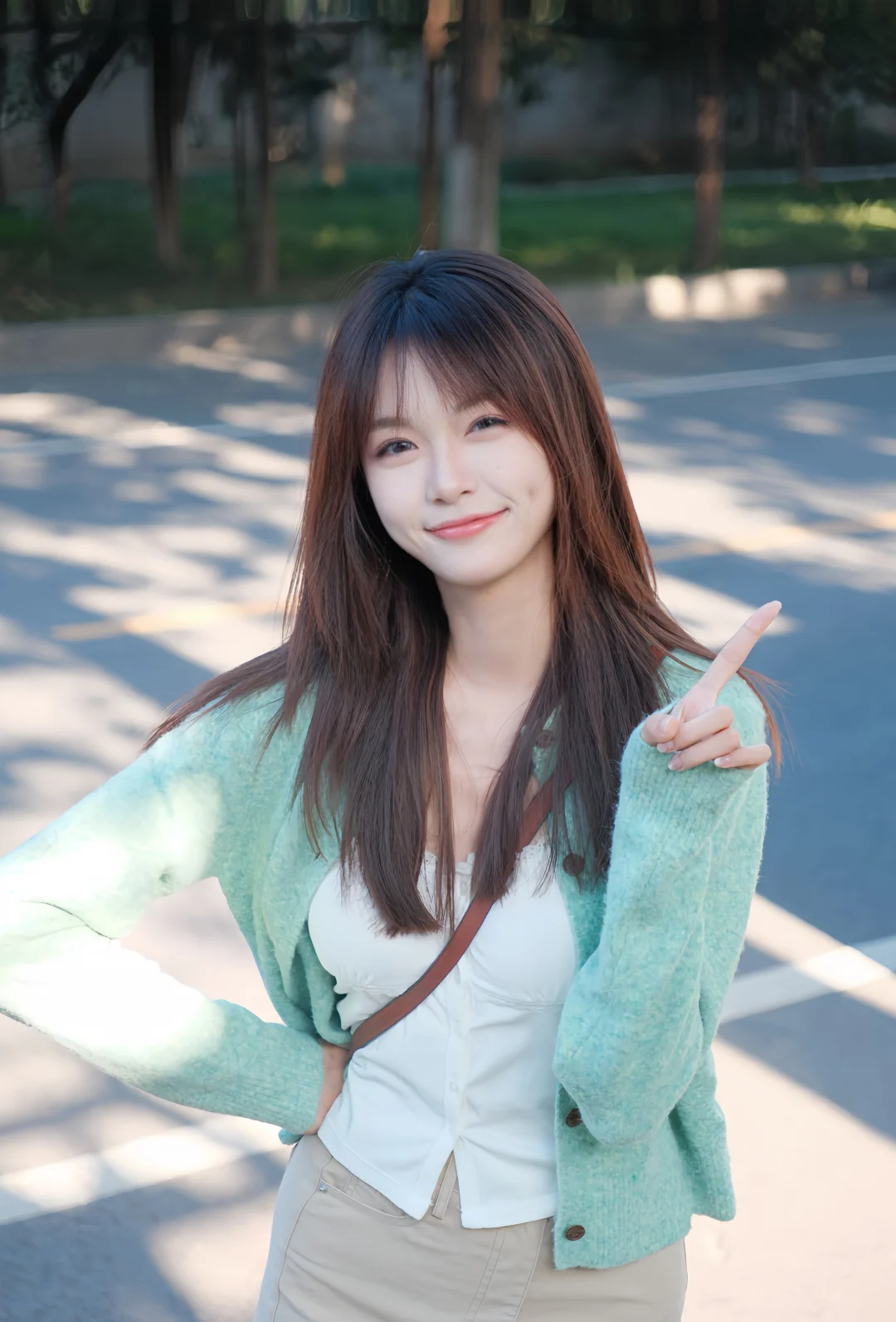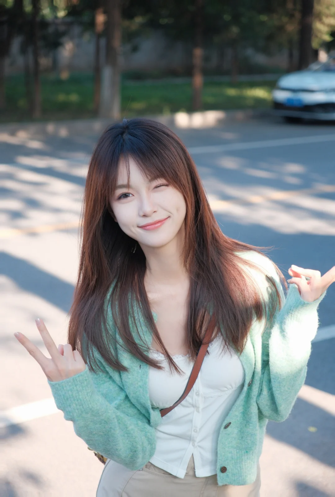 活泼俏皮,画面充满 “邻家妹妹” 的亲近感。
