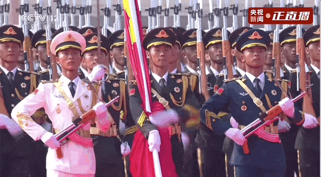 伴随礼炮声出场的国旗护卫队,从人民英雄纪念碑,走向五星红旗升起的地方。无数先烈浴血奋战,山河为证,致敬伟大胜利!