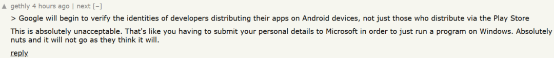 谷歌将掌握开发者身份数据库,同时拥有封杀权(拒绝认证就无法分发应用)。