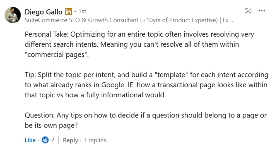Diego 还提出了一个实用的建议,用以全面覆盖相关意图:为每一个页面(比如产品落地页、博客文章等)建立一个“意图模板”,并参考已经在谷歌中表现优异的内容来设计这些模板。