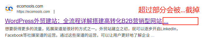 那么就意味着超过60个英文字符谷歌可能会在搜索结果中将你的标题截断;如果标题过短,则很难描述你的页面是关于什么的。